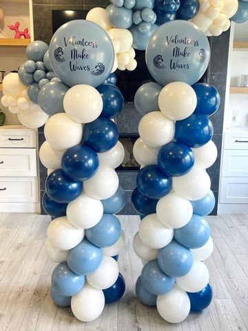 These statement pieces are great way to attract your guests or clients. Balloon towers range from 6 ft - 7 ft tall, come in several different style and can include a custom inscription.